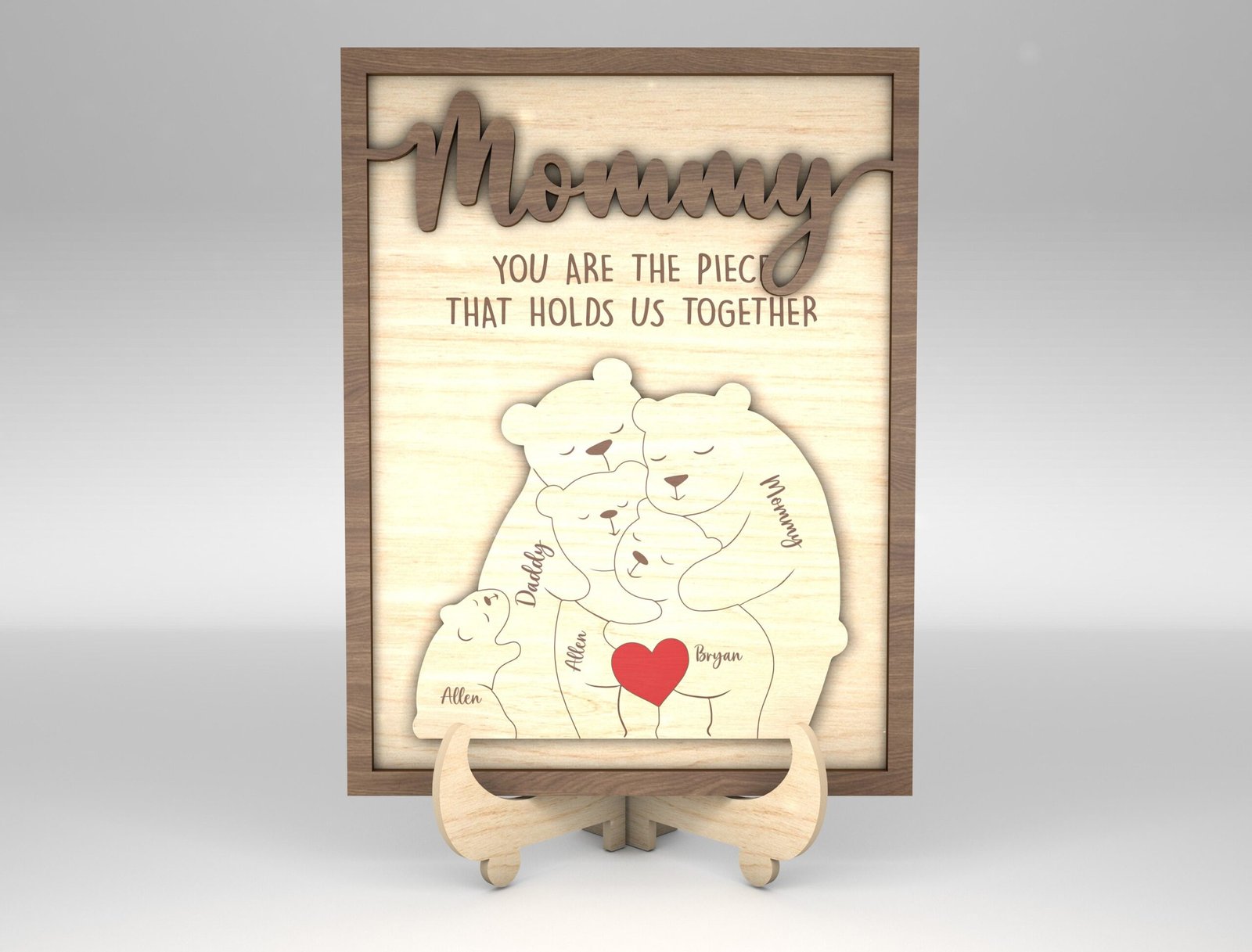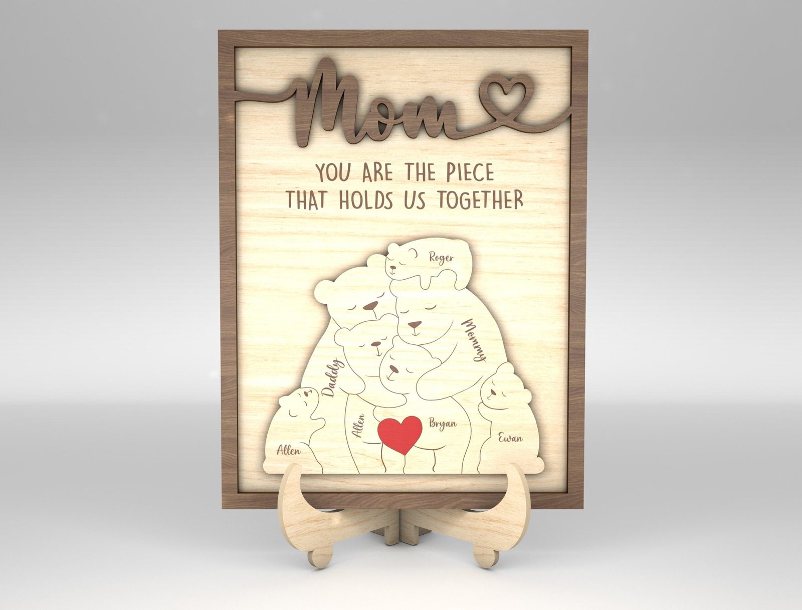 • Create a personalized wooden sign with the puzzle bear featuring each family member’s name.